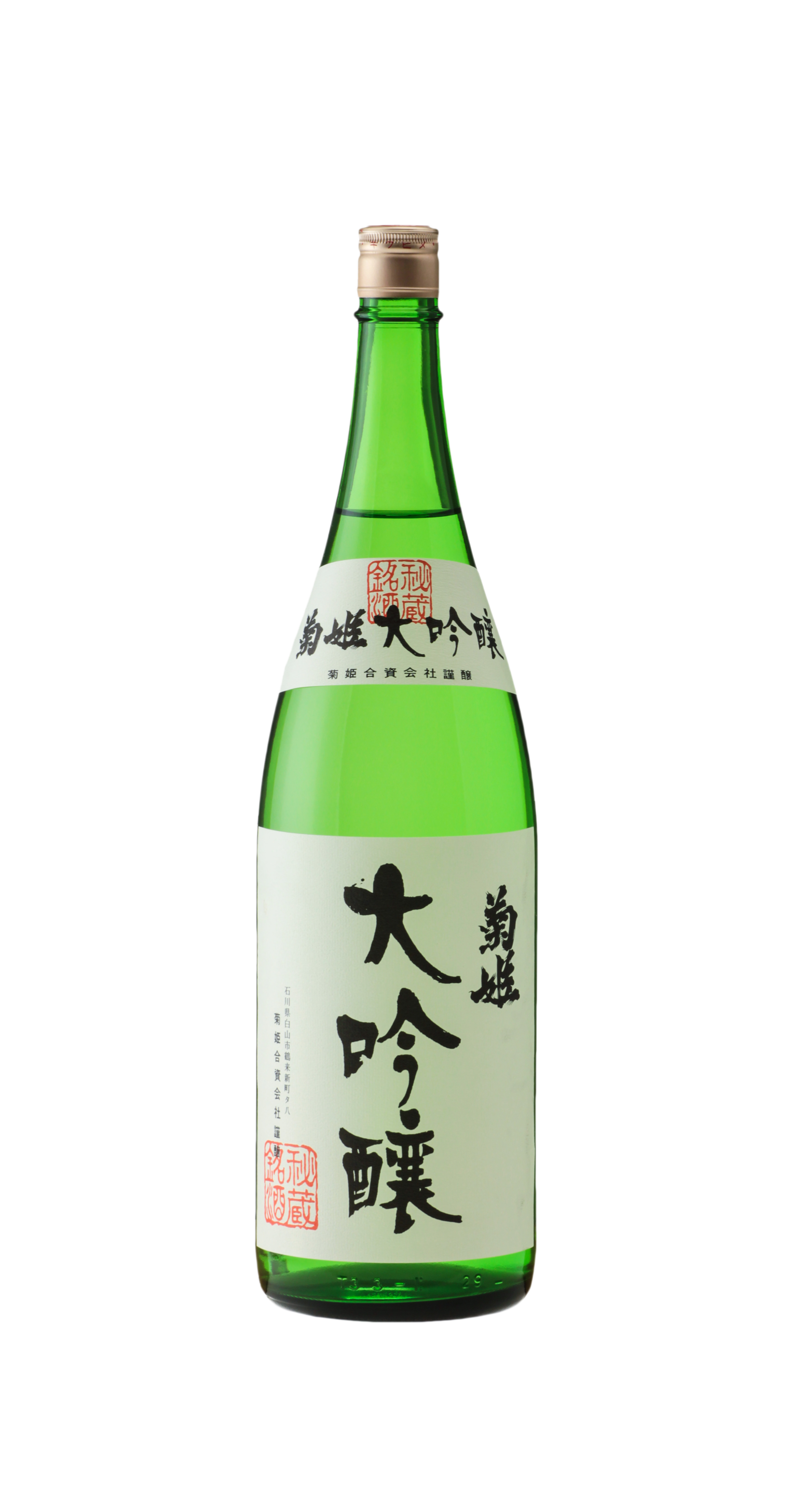 白山比咩神社御祭神の御名を戴く、菊姫の最高峰。極上の吟醸酒だけを厳選し、さらに十余年間ゆっくりと寝かせ、歳月をかけて磨き上げました。